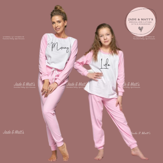 Our luxury satin pyjama sets are available in adults and children's sizes