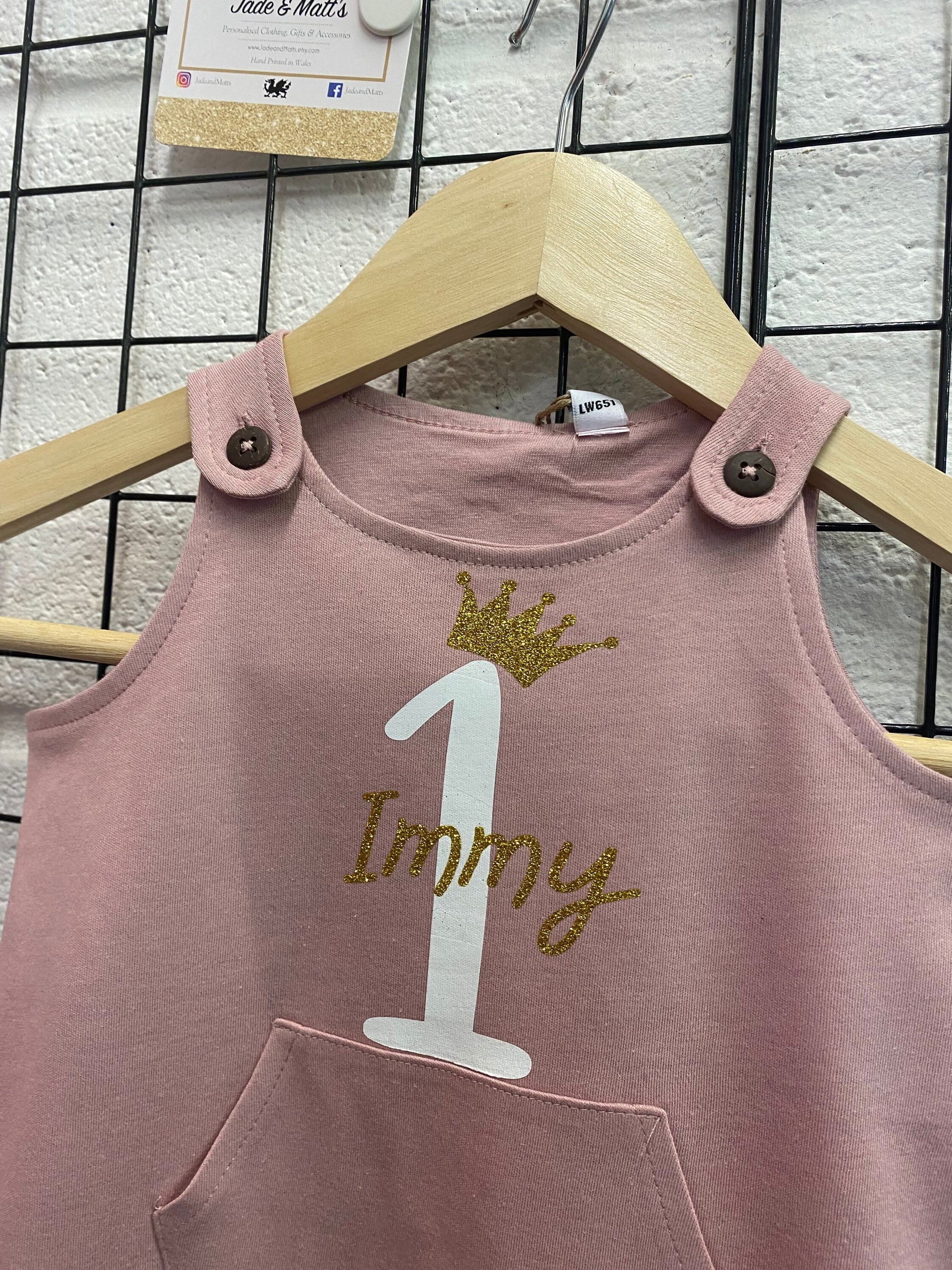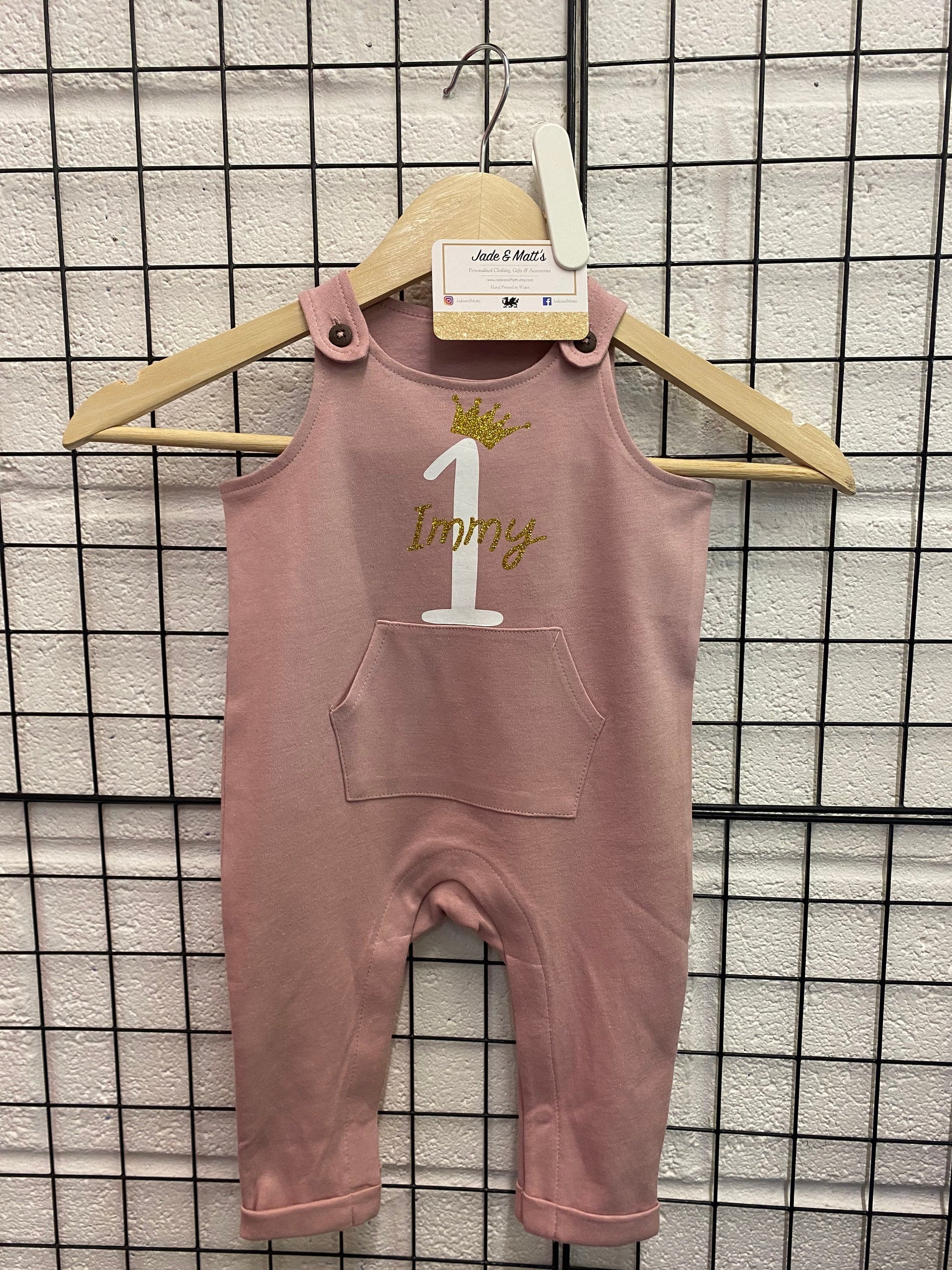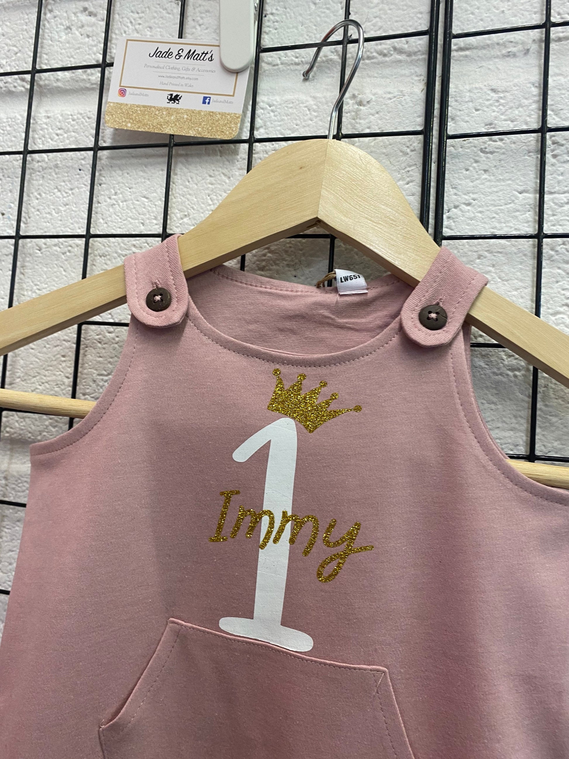 Kids Birthday Dungarees | Personalised Pink & Navy | Cotton Romper