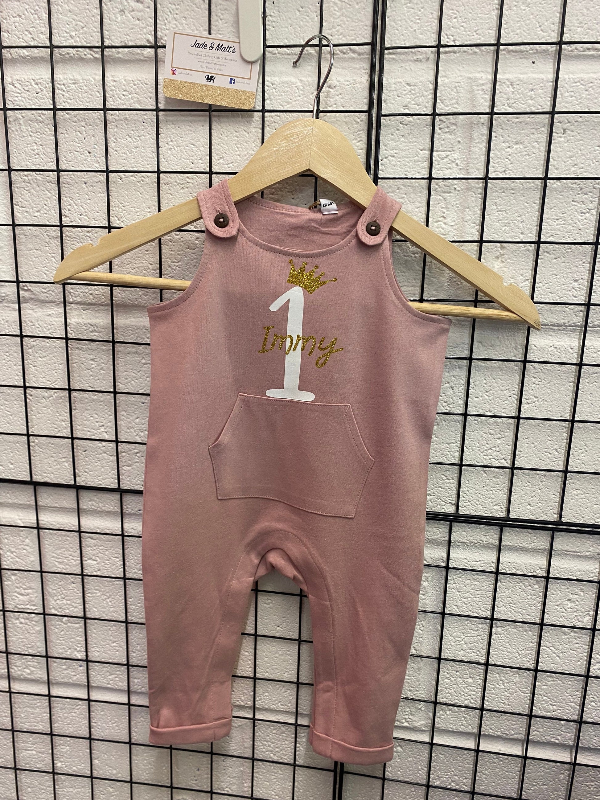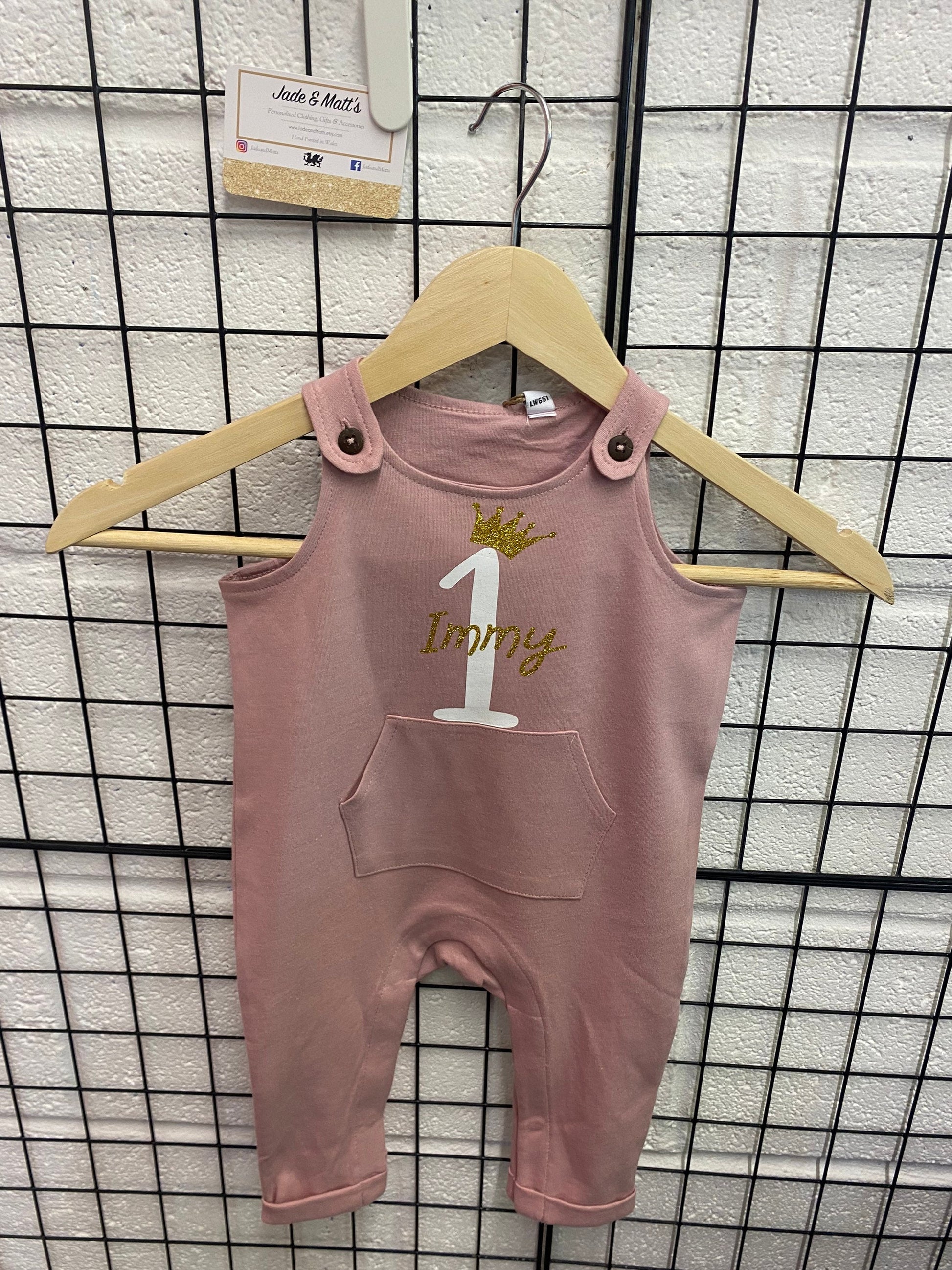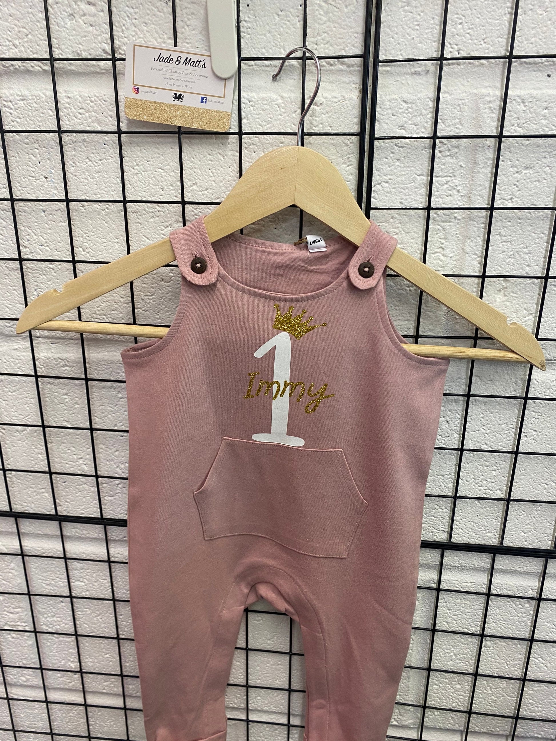 Kids Birthday Dungarees | Personalised Pink & Navy | Cotton Romper