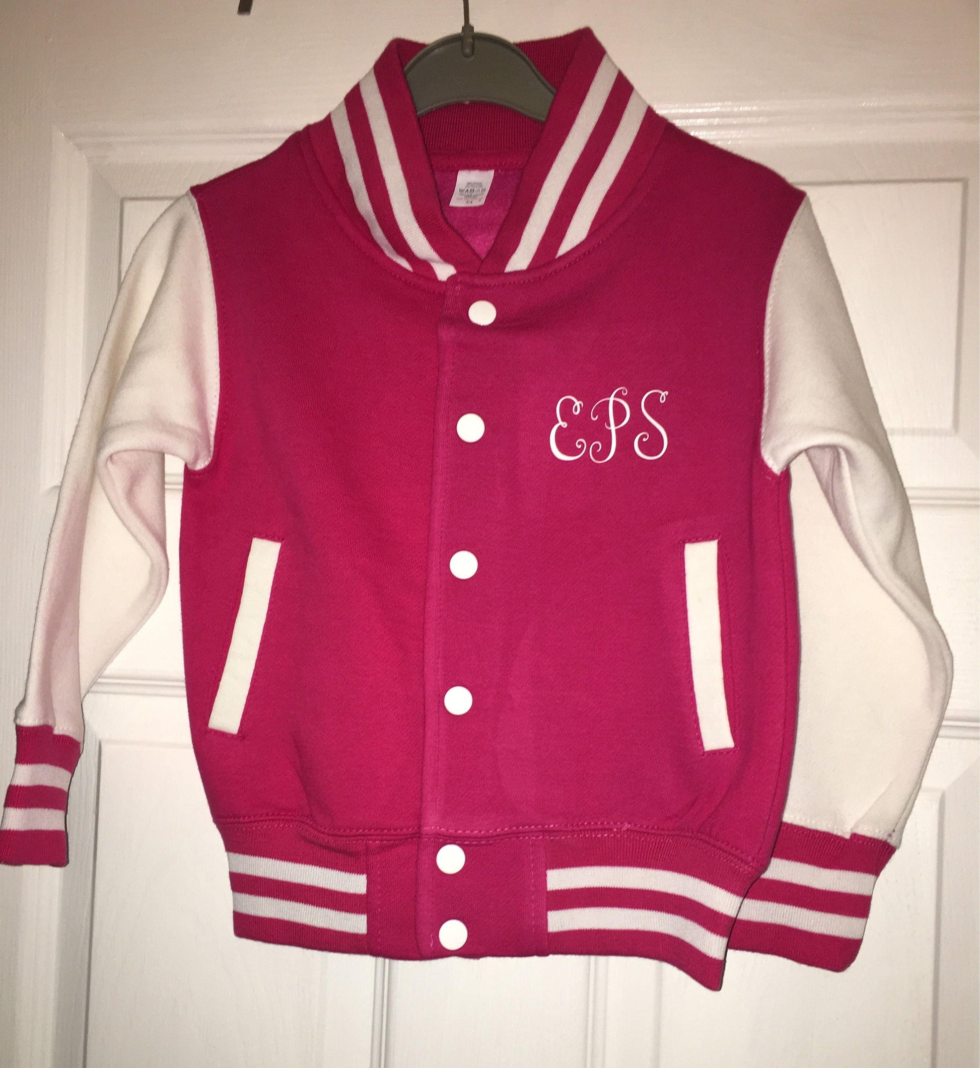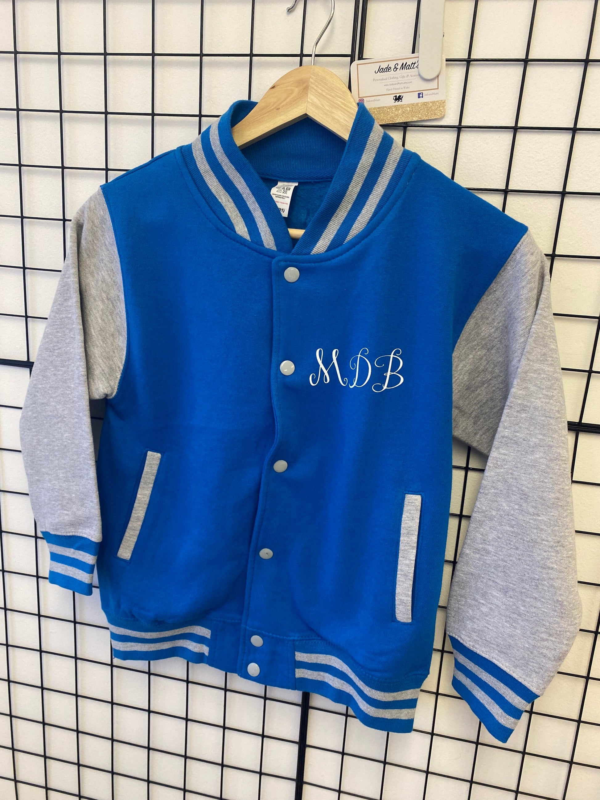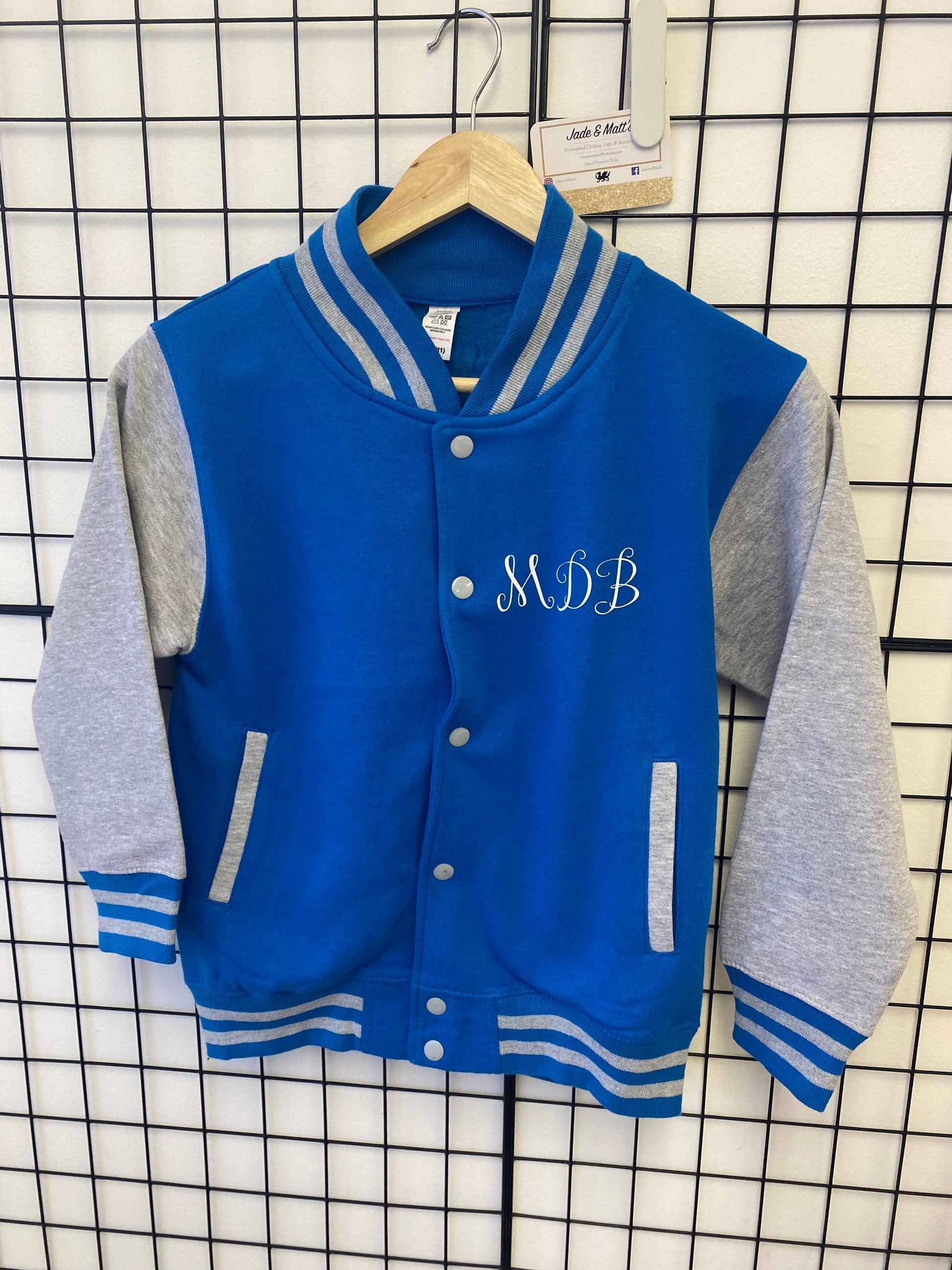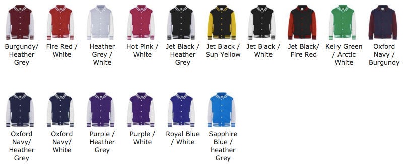 Our children's varsity jackets are unisex available for girls and boys in a range of colours and sizes!