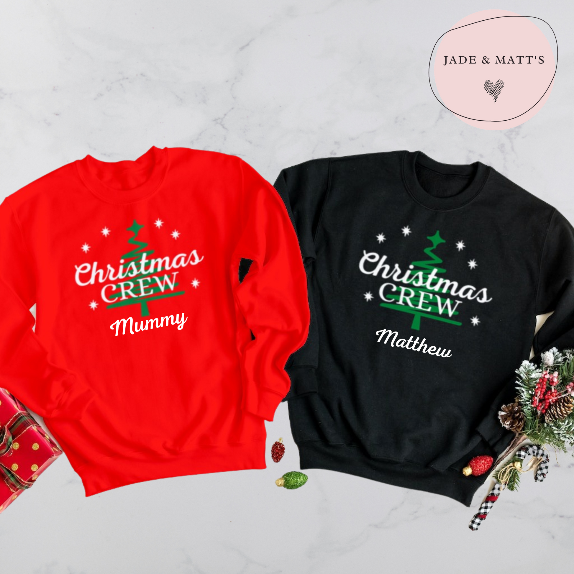 These are our new for 2022 'Christmas Crew' Sweaters, allowing you to personalise each with your name!