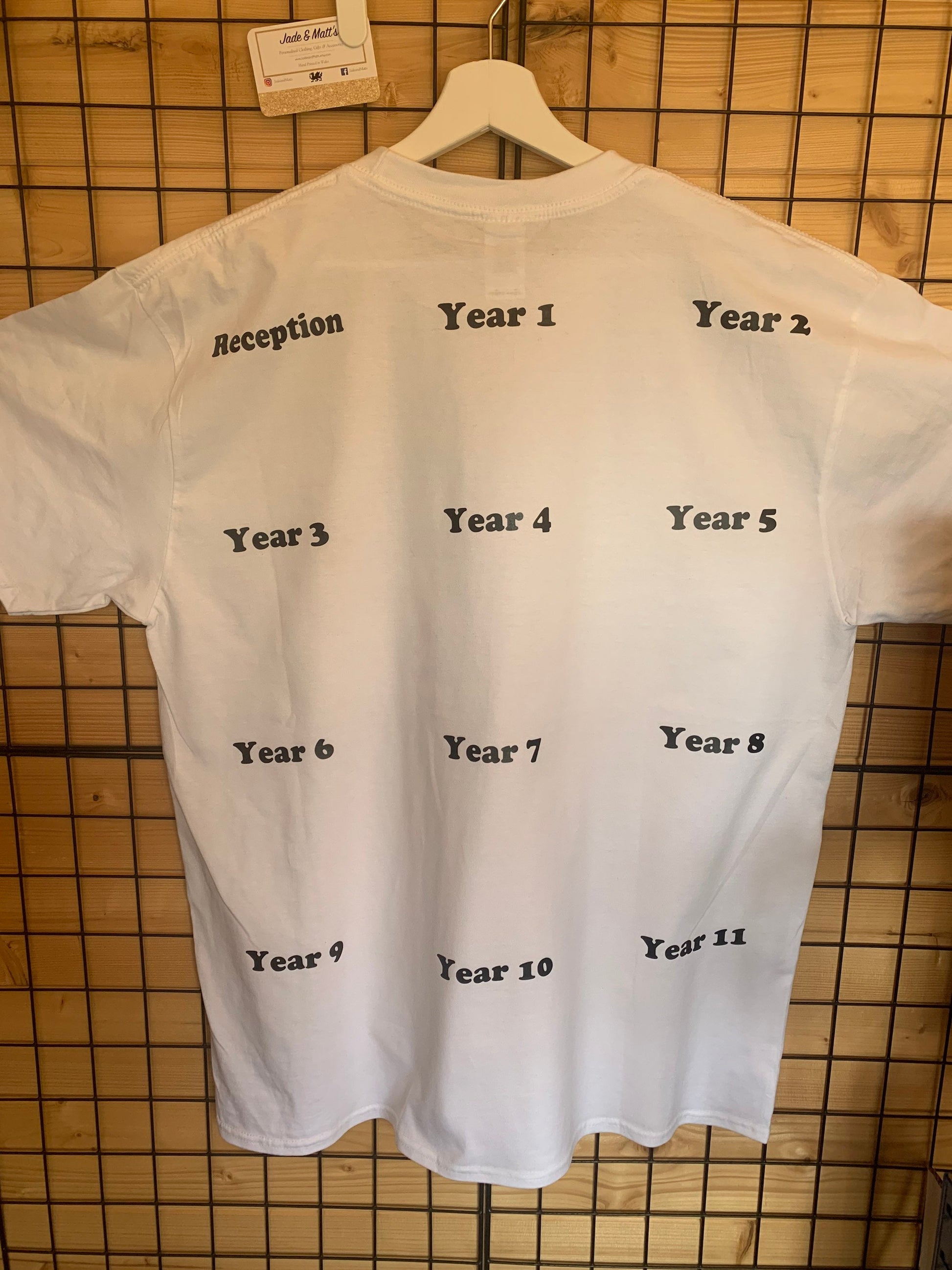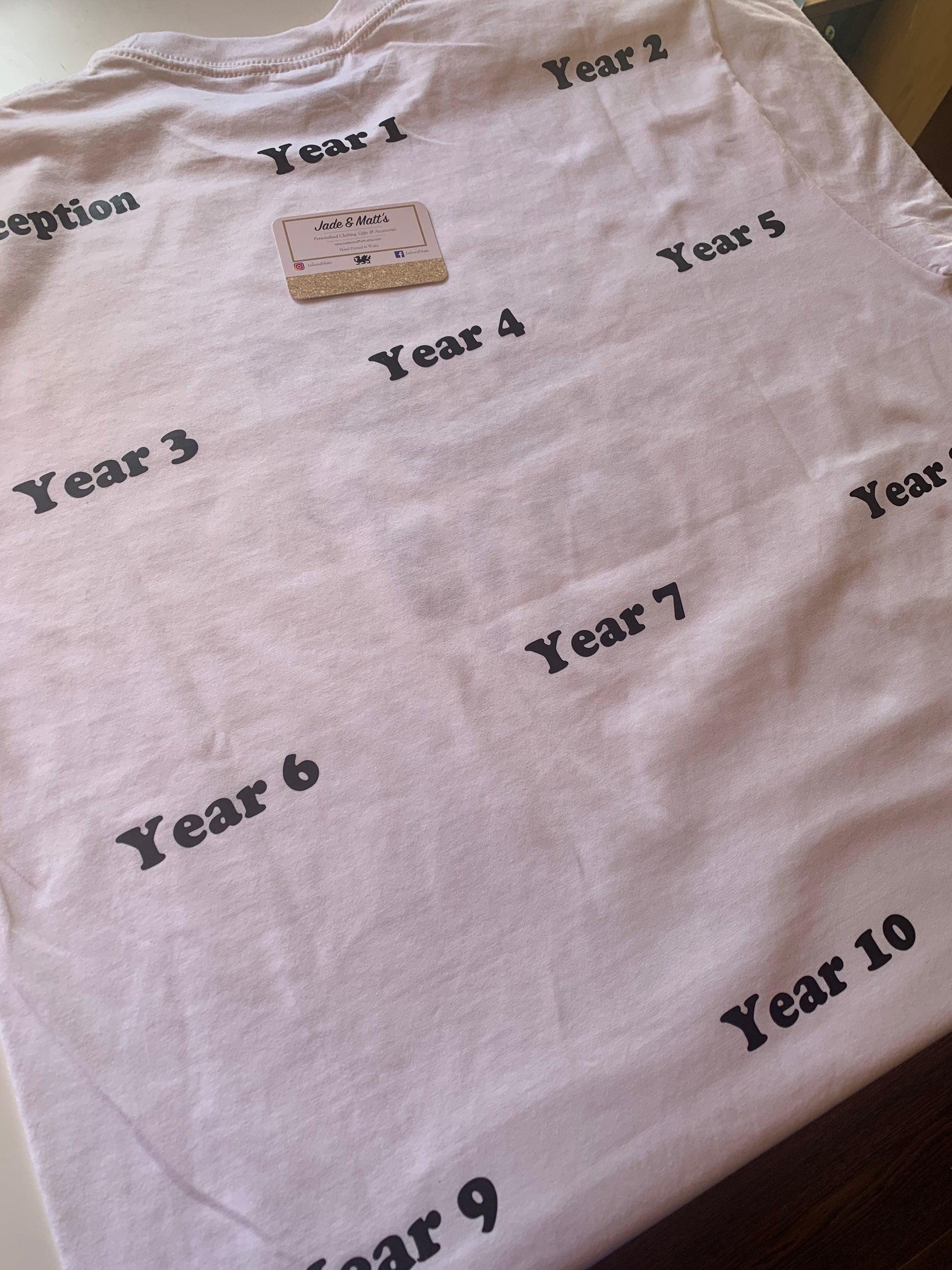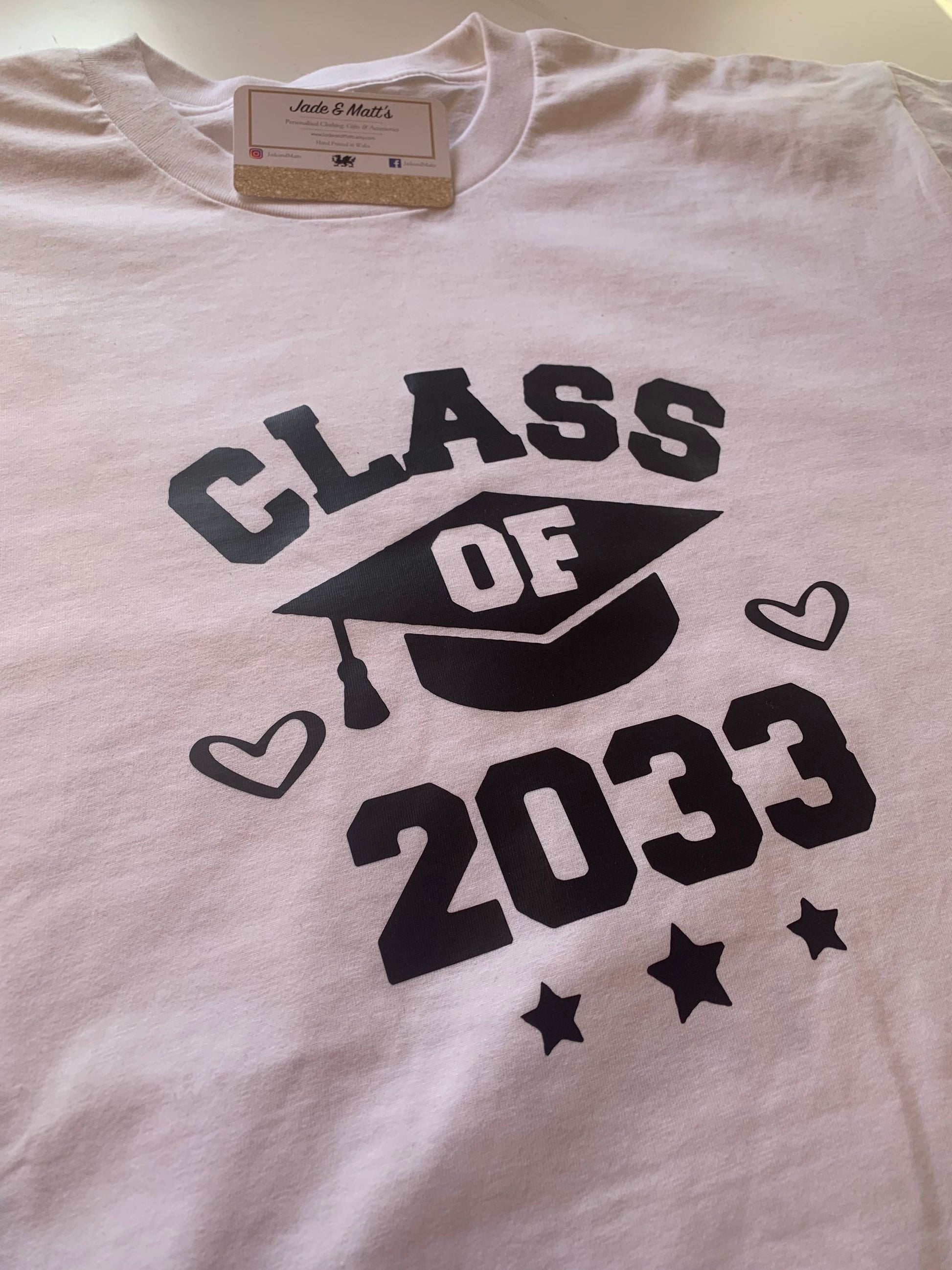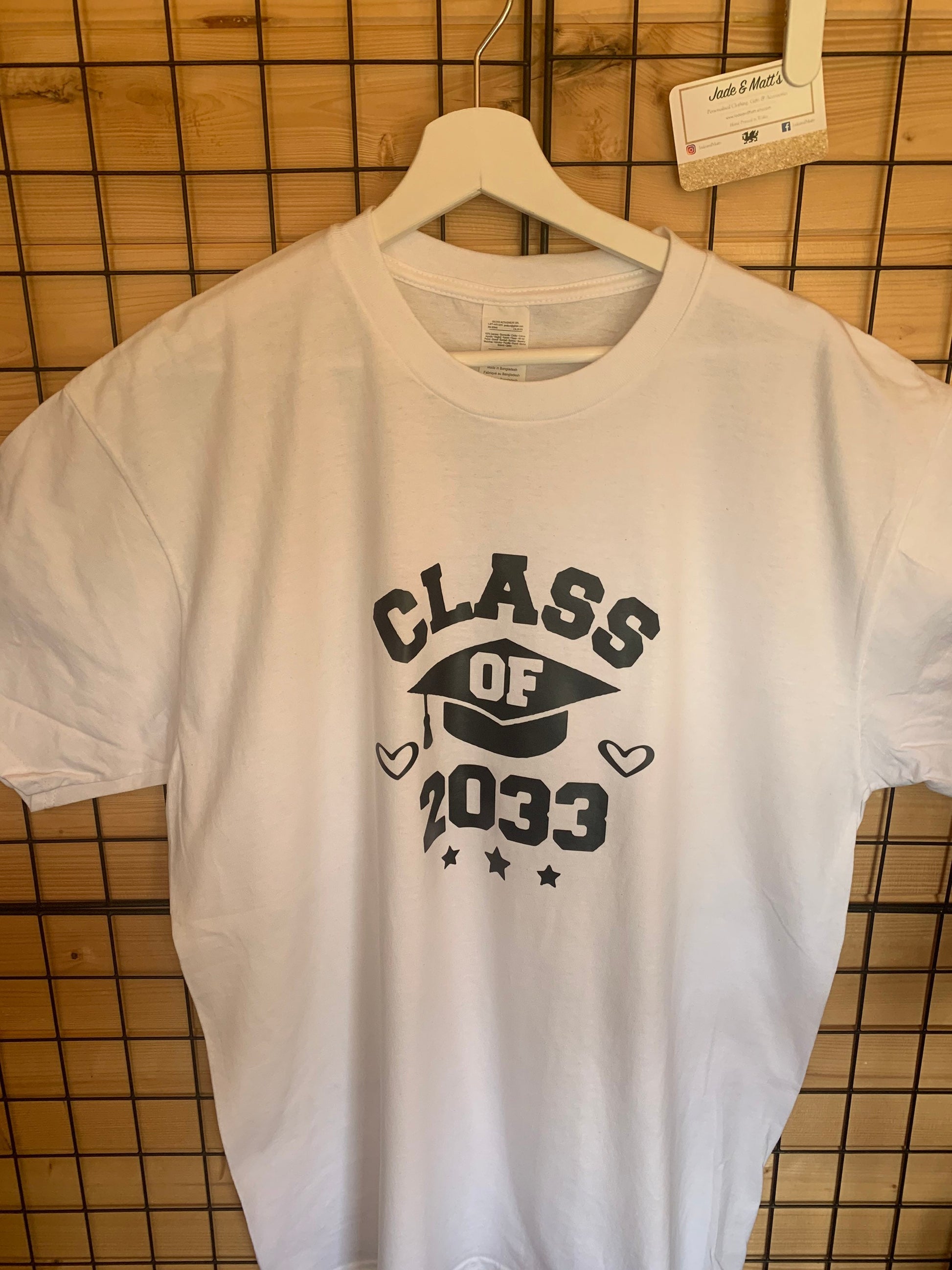 Our class of 2033 white T-shirt. Please state if you would like a different year on ordering