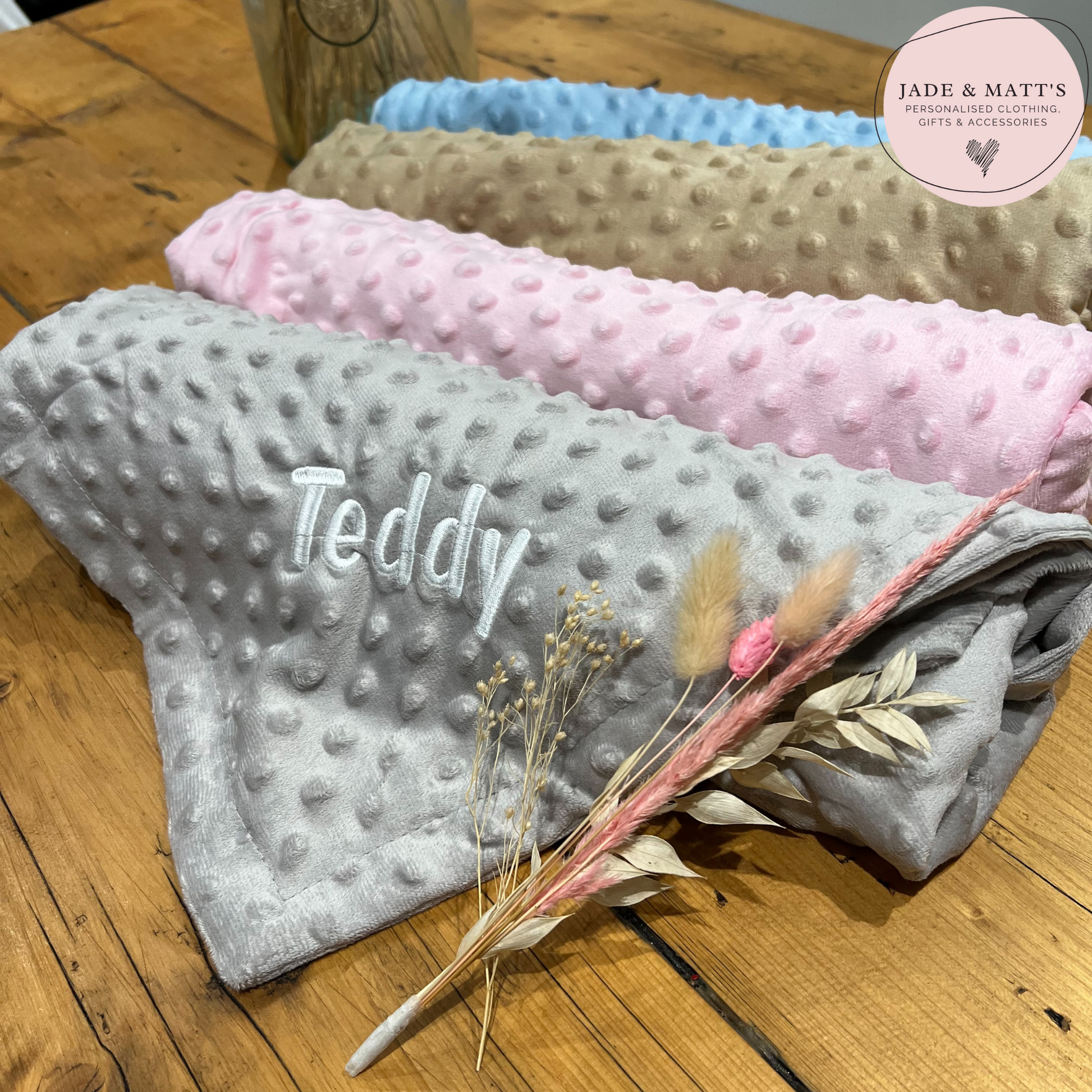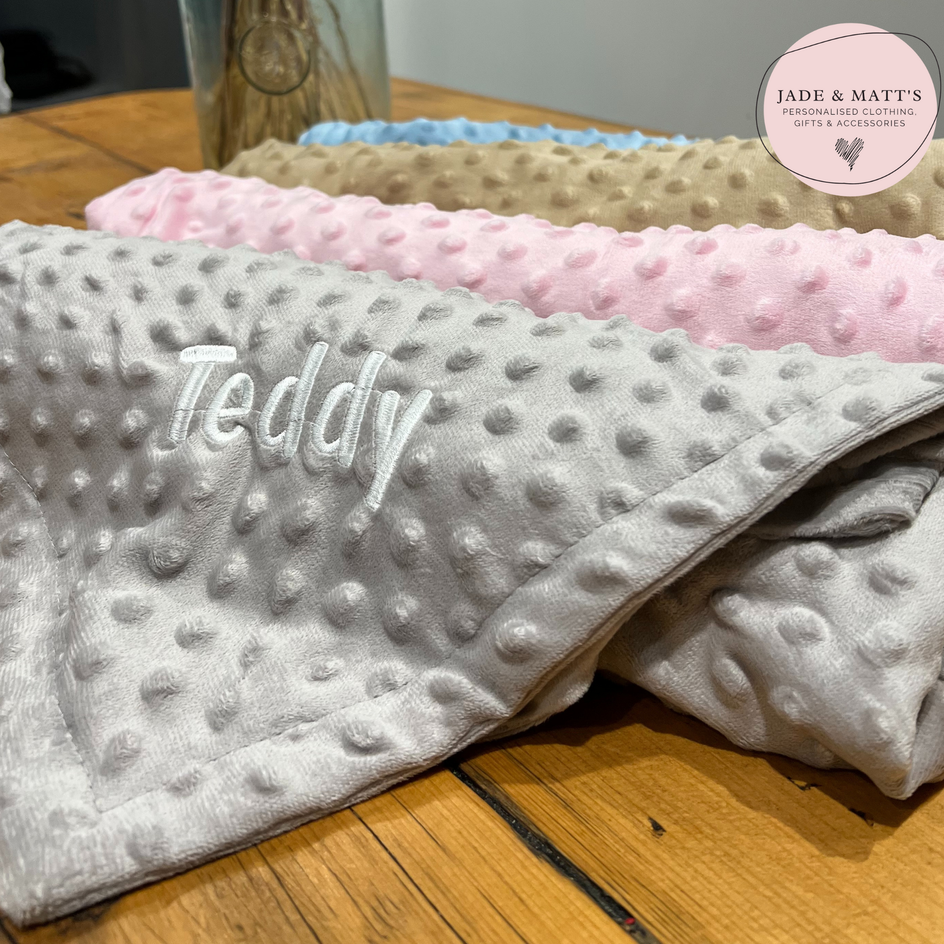 Embroidered with your choice of name, please leave note for name to the blanket.