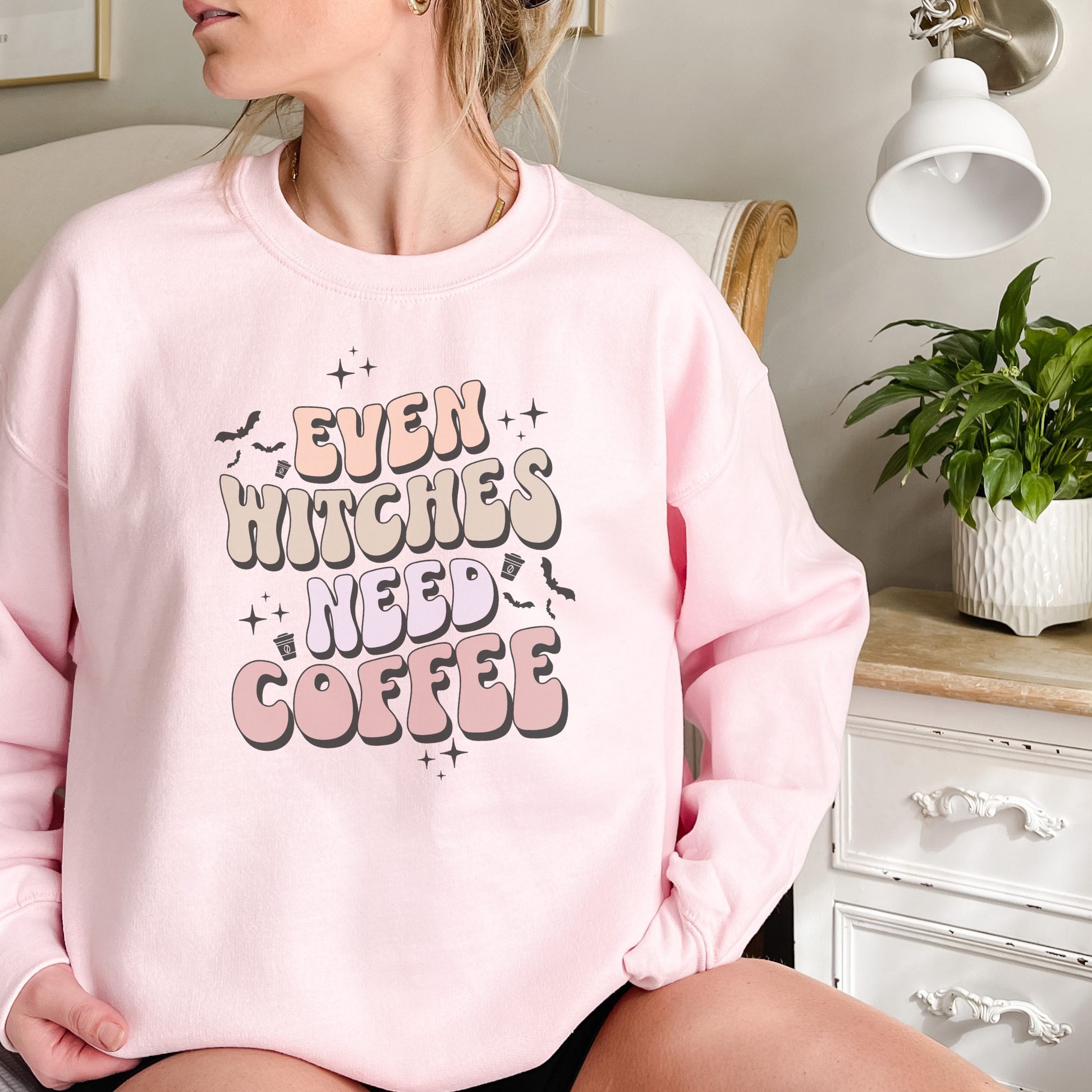 Even Witches Need Coffee | Unisex Sweatshirt | Baby Pink