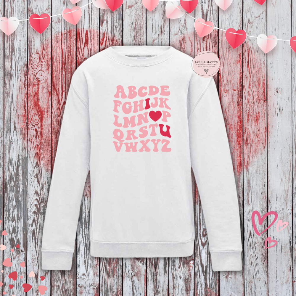 Spread some love with our alphabet I Love You Sweatshirt! Made with 80% ringspun cotton and 20% polyester. Get yours now!