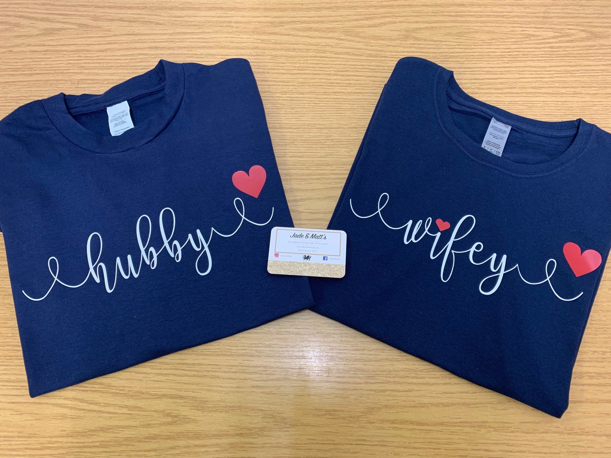 Design cannot be changed. You need to send us your photo via message or via email once you've placed your order. Your photo will be added to the tshirt exactly as it's sent to us so please crop etc and make sure it's a good quality photo. Please contact us if you have any questions. Please state in the personalisation box the names to go on each. No other text can be added. Red hearts are either side of the photo only as shown.