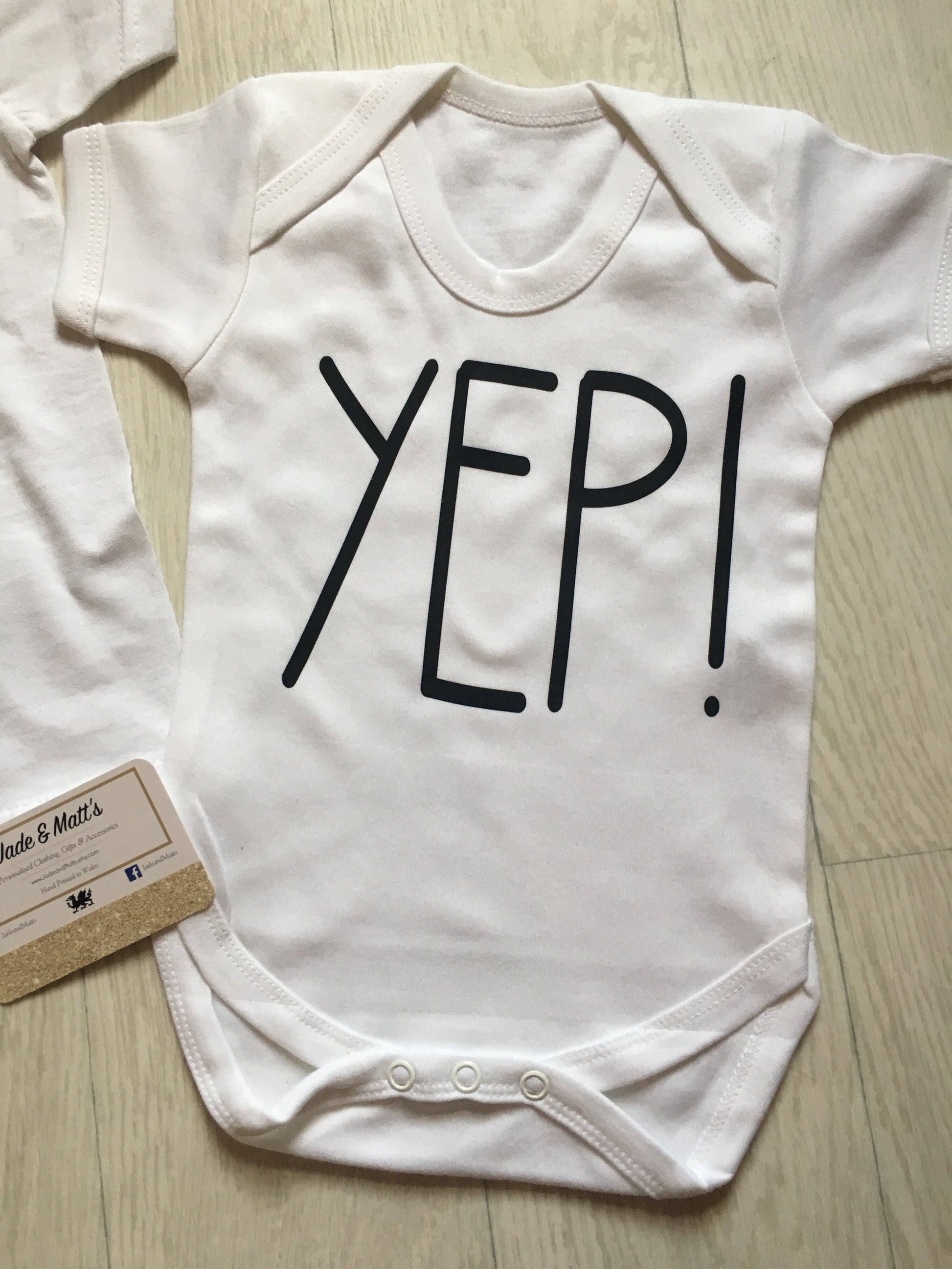 The White tshirt & babygrow will have black writing unless another colour is specified.